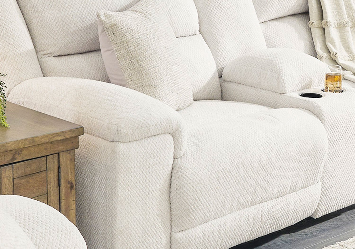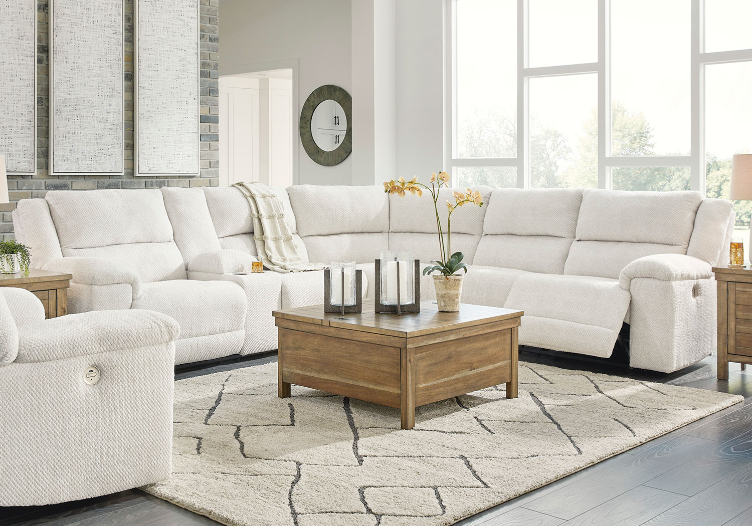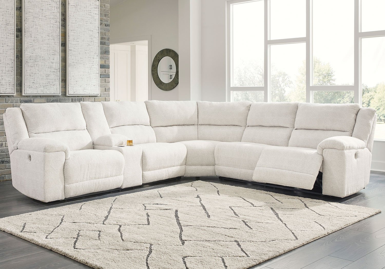 - Includes left-arm facing power reclining loveseat with console, wedge and right-arm facing power reclining loveseat