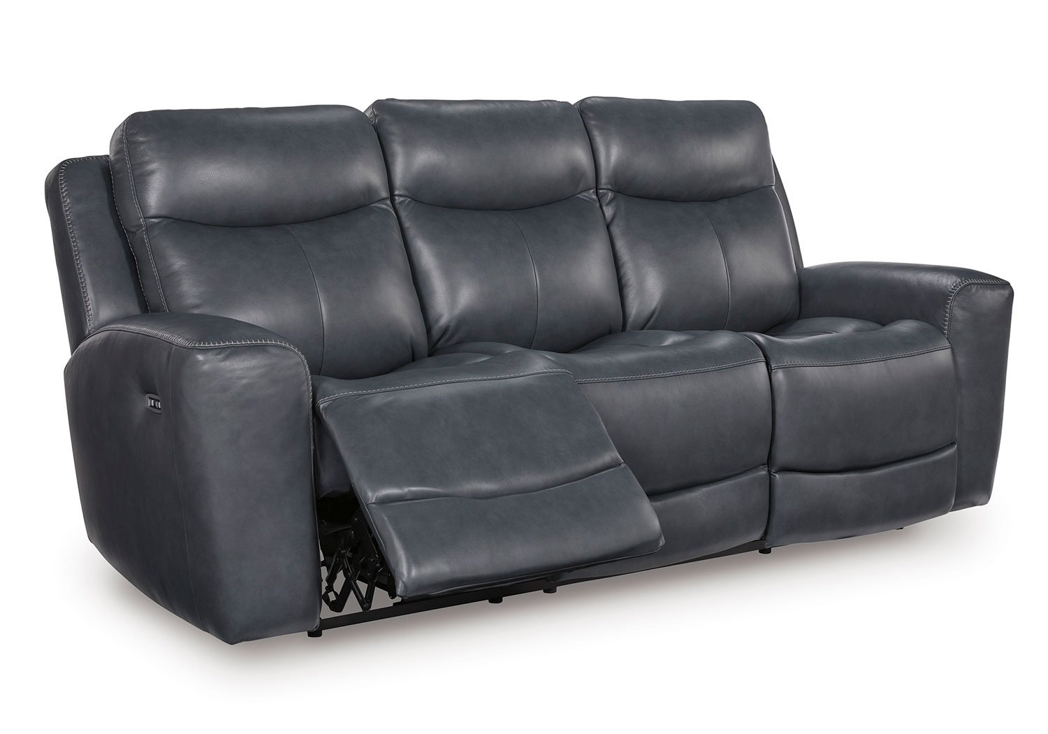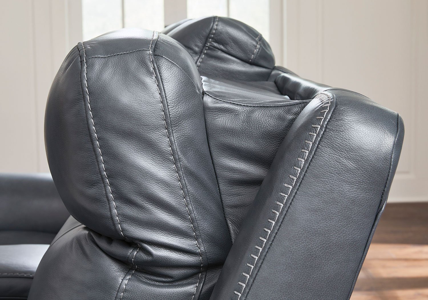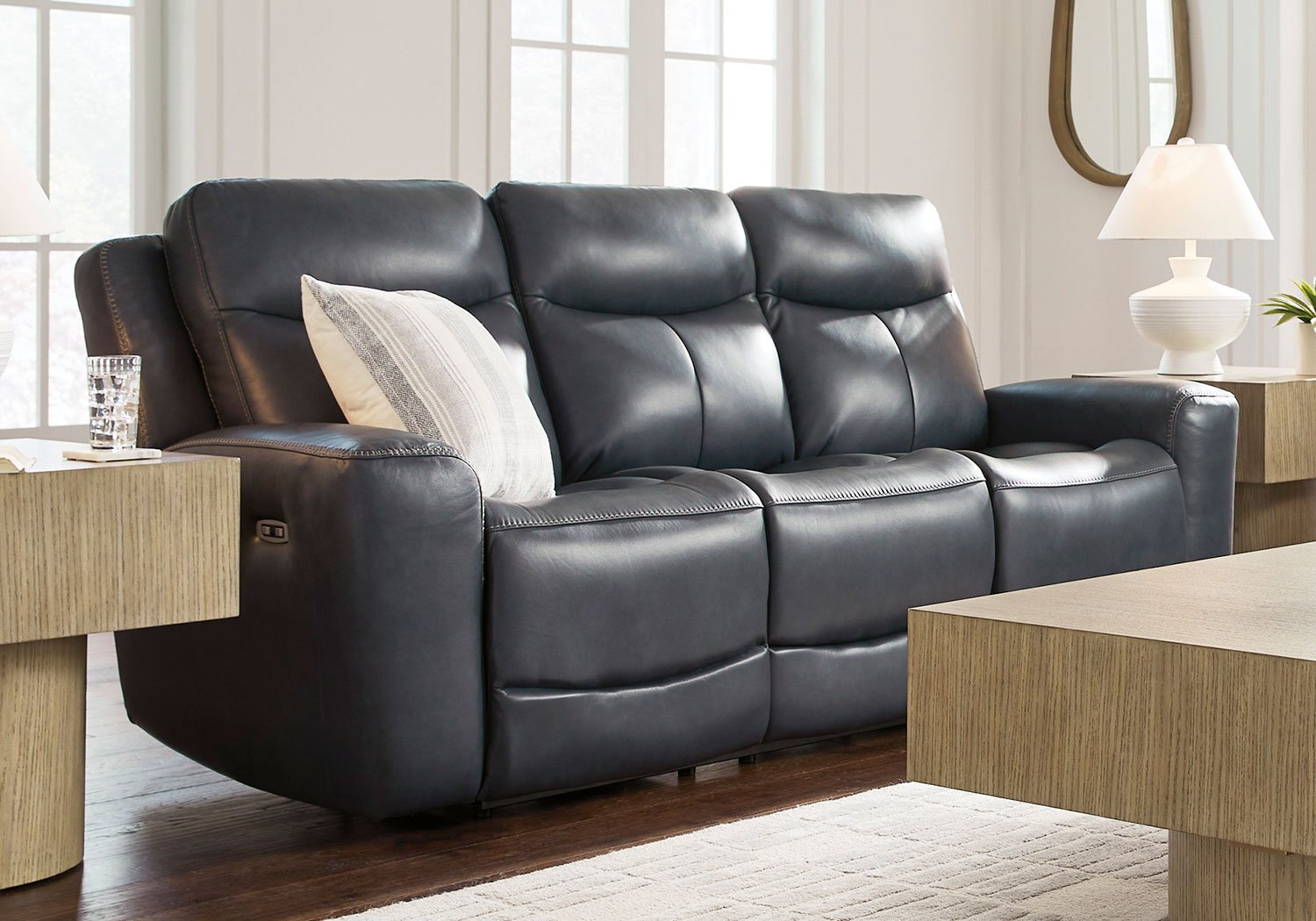 Prepare to be moved. This power reclining sofa combines sleek modern design with all the soothing features you’ve been dreaming of. Wrapped in blue-hued leather and faux leather for affordable luxury, this highly contemporary piece with cozy scoop seating suits your relaxed vibe. Infinite reclining and headrest positions are yours at the touch of a button. It’s the perfect choice for anyone who wants their comfort with a side of style.