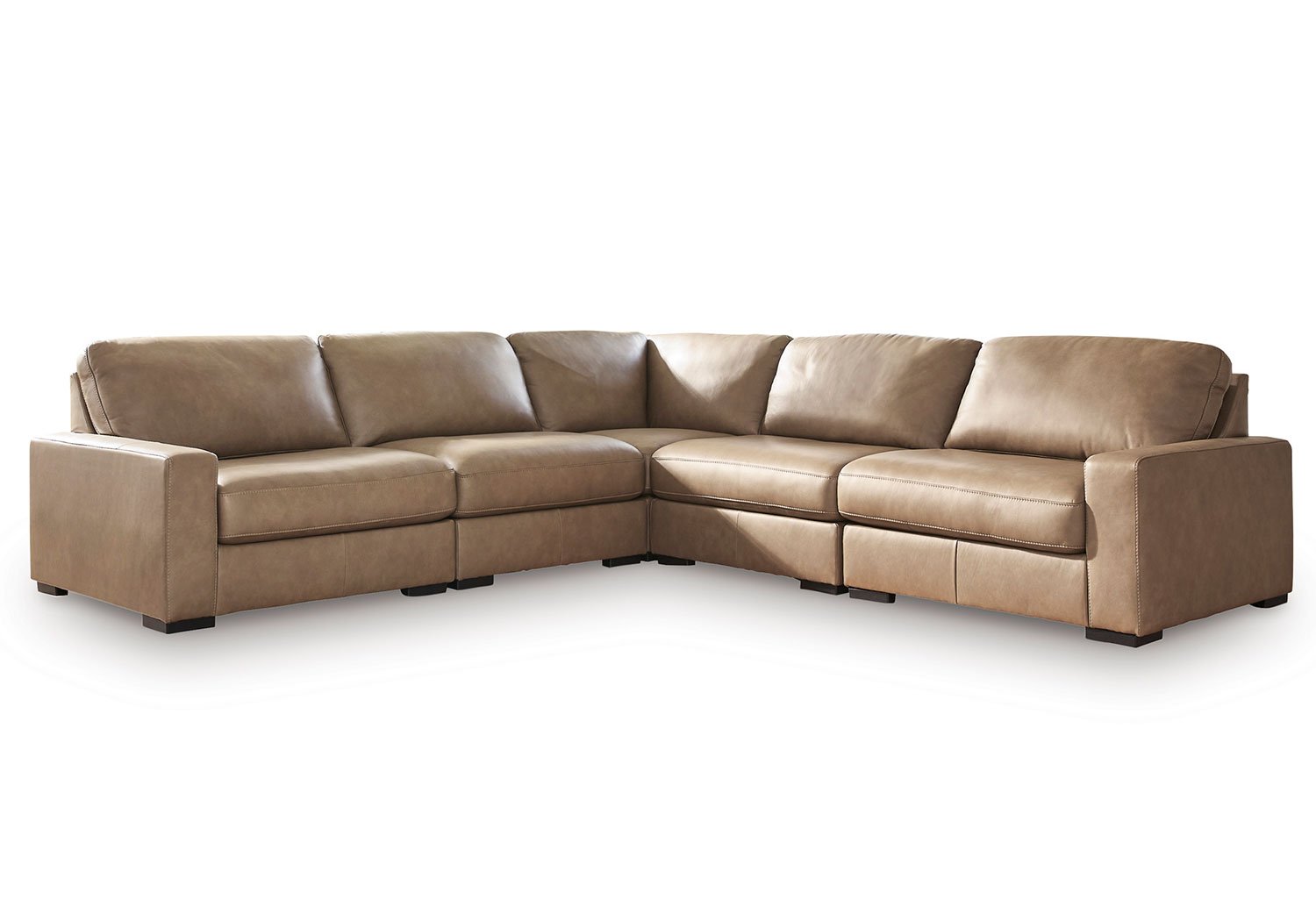 Refined design meets classic comfort in this sectional. Ultra-chic brown leather covers its seating areas, reflecting an on-trend approach to style. Elevating your space on a budget? Expertly matched faux leather keeps this sleek sectional affordably luxurious. And with a versatile modular design, you can arrange and rearrange the pieces to suit your changing needs.