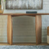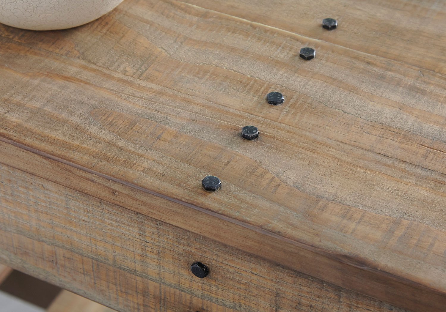 As this console table proves, sometimes less is more. Dramatically transform your living space with the warm and rustic appeal of solid wood construction and open-slat shelving. Washed in a light brown finish, this sofa table sets a new standard for down-to-earth refinement.