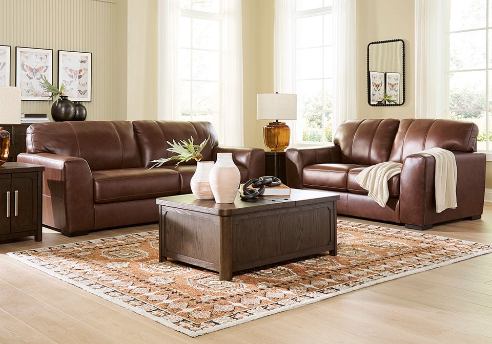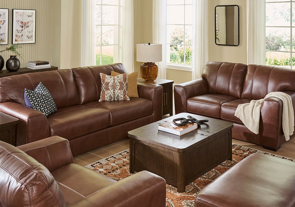 Effortlessly stylish, indulgently comfortable. This Series encourages everyday relaxation with invitingly plush, extra-spacious cushions. It embodies affordable luxury, pairing the sleek appeal of top grain leather in the seating area with expertly matched faux leather on the sides and back. Suiting spaces from casual to contemporary, the sofa’s universal appeal makes staging your space nearly effortless.