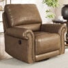 Everyone can have the best seat in the house with this Series. Its nailhead trim puts the finishing touches on the traditional roll arms you love. Comfy, durable cushions—wrapped in a rustic yet sophisticated faux leather—keep you feeling relaxed. Chenille Accents in a distressed motif pattern add another layer of comfort. Turned legs show that style and quality flow from top to bottom.