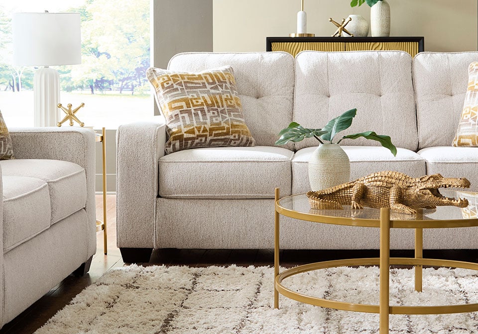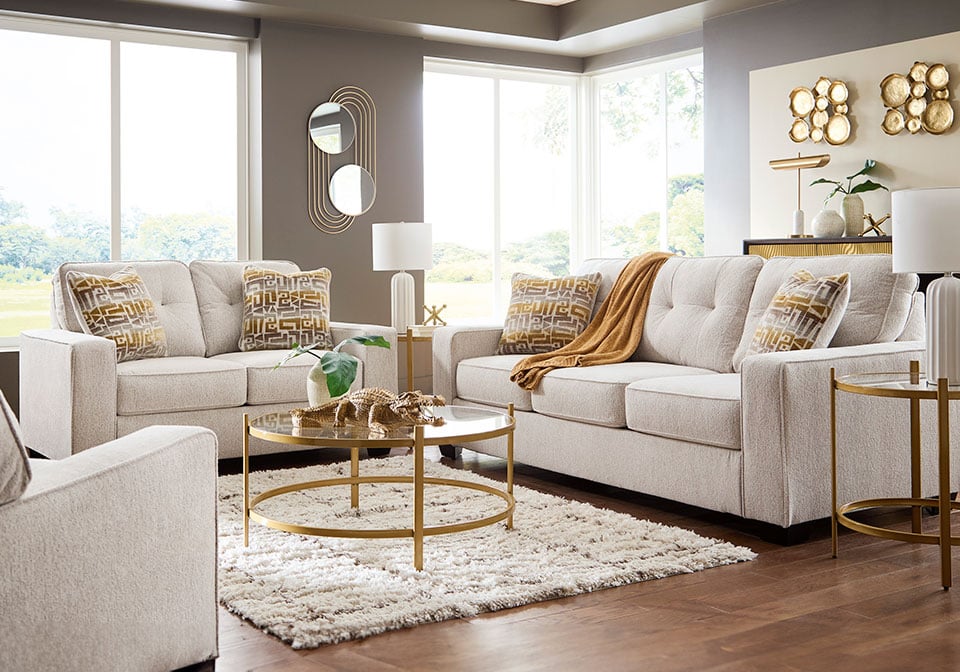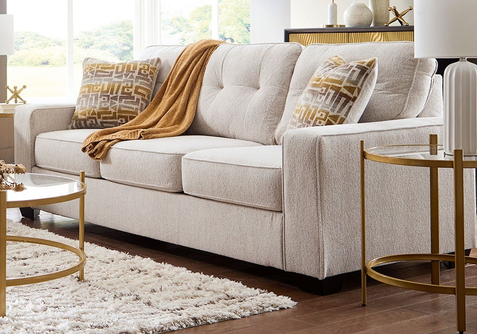 Sincere in its styling, this Series marries classic function with modern design elements for truly transitional appeal. Its track arms lend a contemporary vibe while soft, durable upholstery ups the comfort level. And with a beautiful neutral color, styling is made simple. All that’s left for you to do is to sit back and relax.