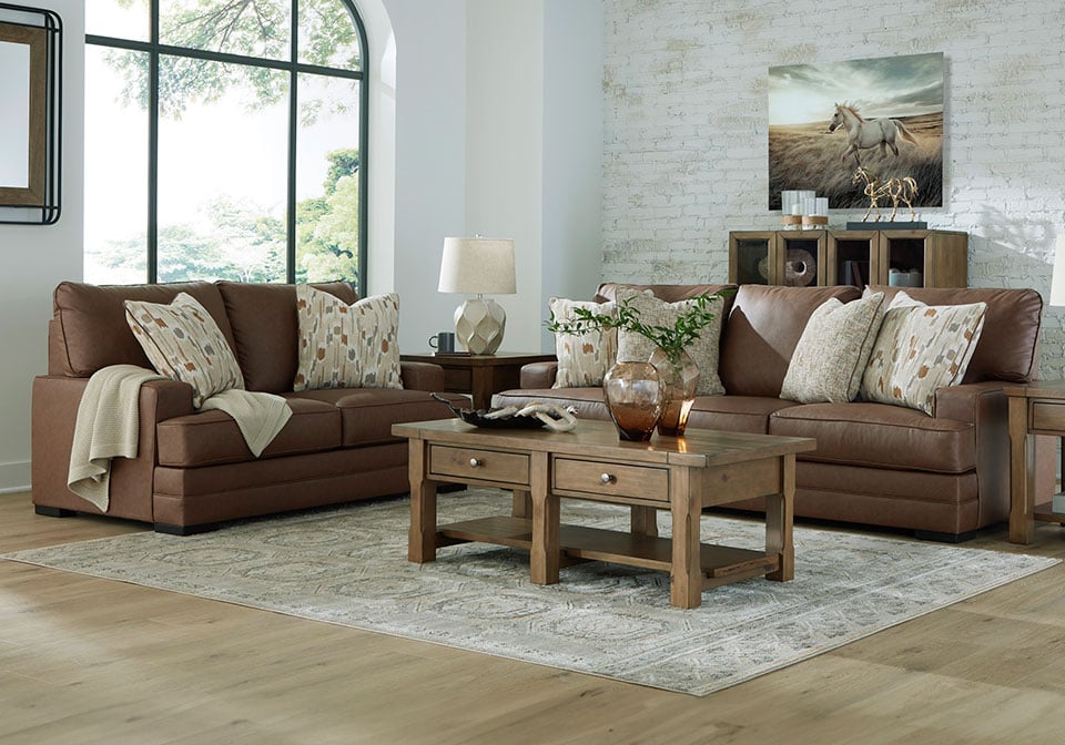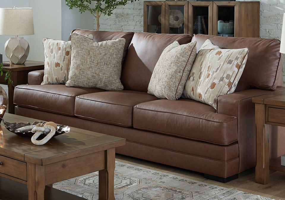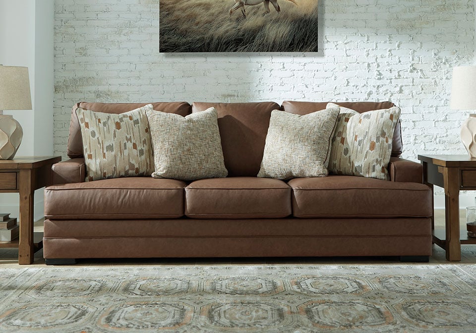 Simple and streamlined, this Series delivers a cozy yet contemporary vibe you’ll love as much as we do. Its extra-roomy size and supple caramel faux leather invite you—and your besties—to have a seat. This piece’s understated elegance and enduring comfort are perfect for entertaining or a relaxing night.