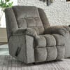 Elevate your movie nights with this power recliner. Its adjustable headrest ensures a perfect view of the TV no matter how far back you recline, and the extended ottoman offers extra space for maximum comfort. Stylish stitching and ambient LED lighting create a theater-style experience. Sit back, relax, and enjoy the show in complete comfort.