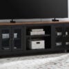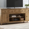 Taking a timeless approach to casual beauty, this TV stand with electric fireplace brings easygoing elegance to the everyday. With its light brown wood tone, it seamlessly slips into your room’s aesthetic. Two spacious cabinets (each with an adjustable shelf) and four drawers offer plenty of storage for media and electronics. Enhancing the experience, the fireplace insert brings a touch of warmth and beautiful ambiance to your living room. With the touch of a button, adjust the temperature and the flame brightness, and connect your device to the built-in wireless speakers. The flame effect includes a realistic-looking log set with glowing embers, along with an ambient down light.