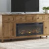 Taking a timeless approach to casual beauty, this TV stand brings easygoing elegance to the everyday. The light brown wood-tone finish seamlessly slips into your room’s aesthetic. Two spacious cabinets (each with an adjustable shelf), four drawers and an open center shelf offer plenty of storage for media and electronics. Enhancing the experience: the optional fireplace insert (sold separately) brings a touch of warmth and beautiful ambiance to your living room.