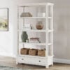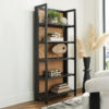 With its mixed-material look, this bookcase seamlessly fits into a wide range of modern settings. Five fixed display shelves in a dark brown finish are balanced by sleek antiqued goldtone metal supports. Offering storage and superior style for books or showcasing decor, this bookcase is a masterful way to stay organized.