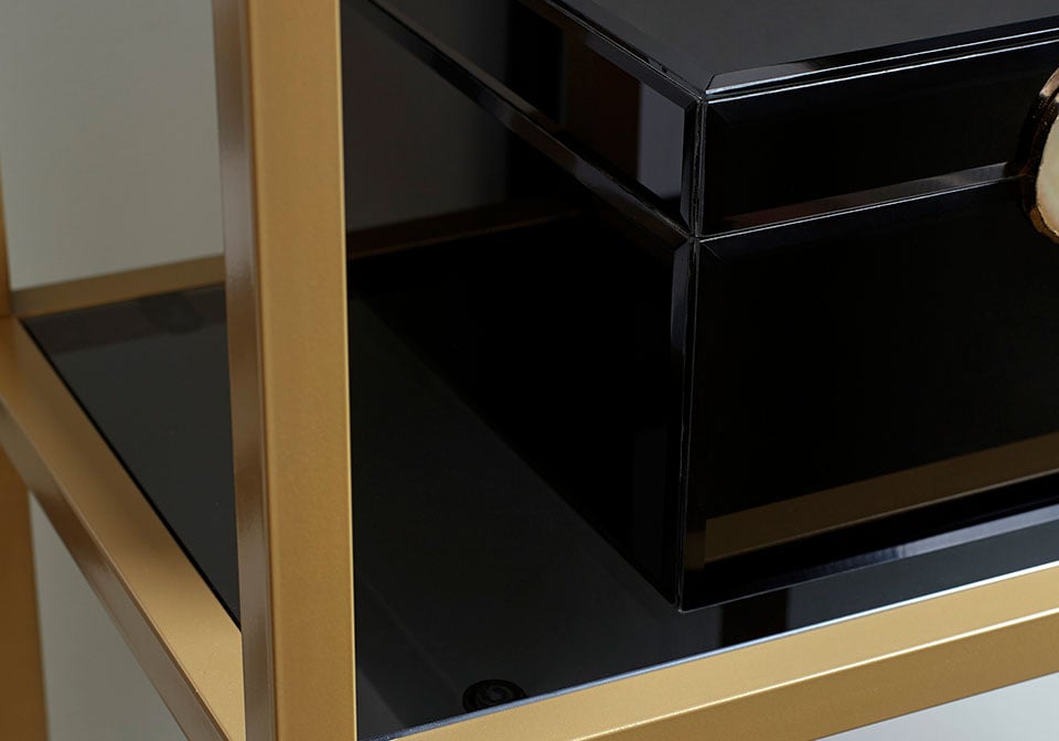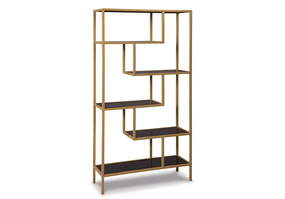 Simple structures make for the coolest designs. This bookcase builds on its architectural bias with offset shelves to create a dynamic display in your space. With goldtone finished metal and gray tinted glass, this piece creates a sophisticated and modern silhouette to elevate any urban-inspired space.