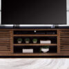- 2 cabinets, each with an adjustable shelf; openings in back for electronics; cool touch exterior cabinet