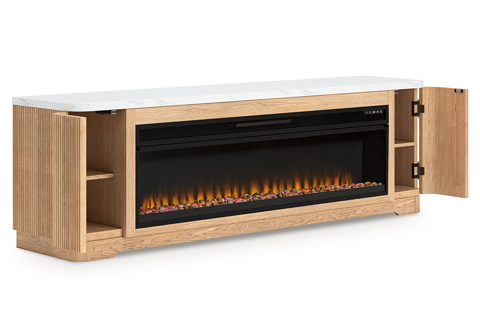 Camdill Light Brown XL TV Stand w/ Fireplace