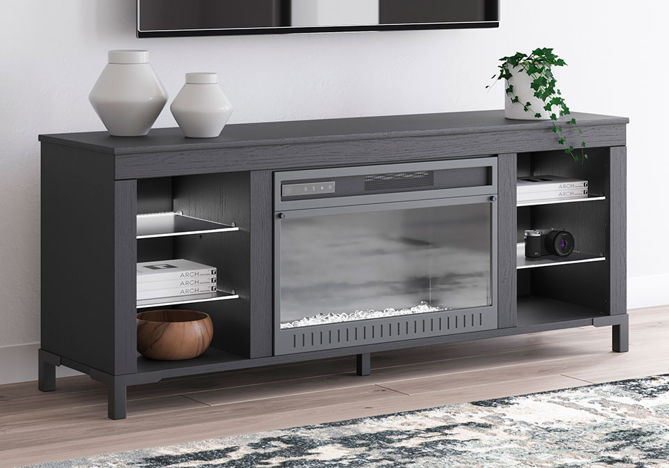 Cayberry Black TV Stand w/ Fireplace