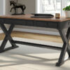 Classic meets contemporary in this home office desk. Its rich, dark wood tone and rounded corners suit today’s trends while balancing a timeless appeal. And with two storage drawers for work and study essentials, this desk gives your office a dose of both form and function.