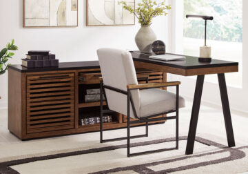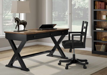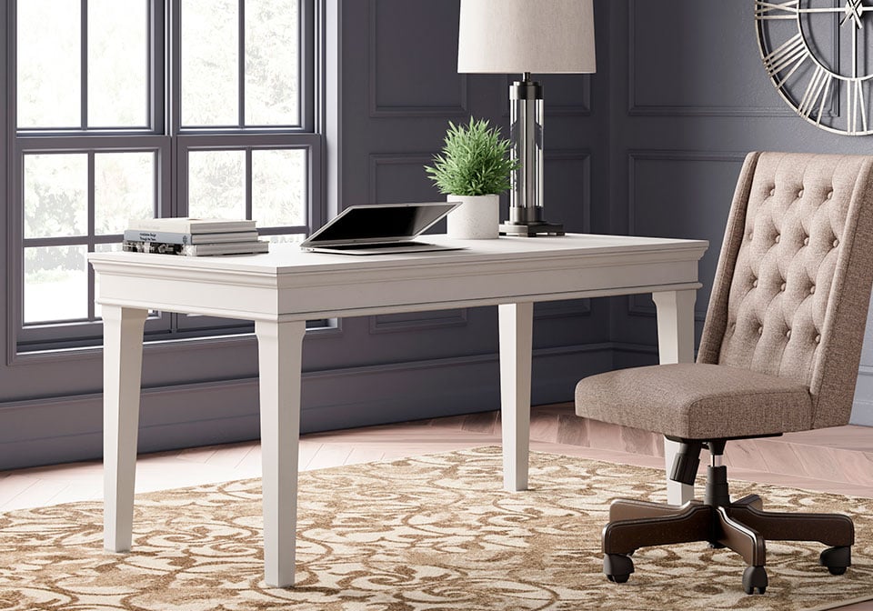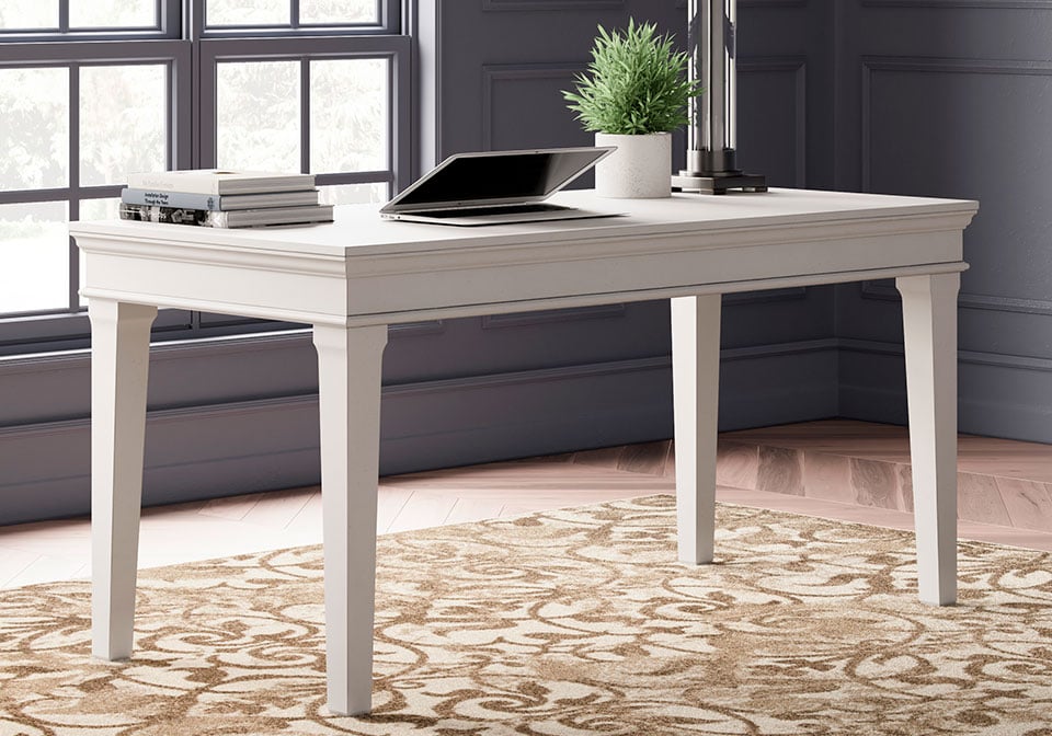 Make a style statement with this home office desk. Its traditional design is updated with an on trend distressed whitewash finish. The desk’s large tabletop makes for a well-organized workspace.