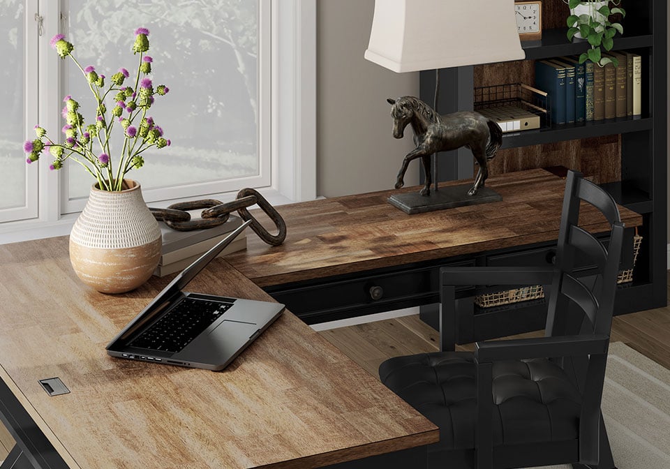 This home office desk return is made with hardwood solids, mango wood veneer and MDF substrates. Pairs with other items in the series to make a desk kit.