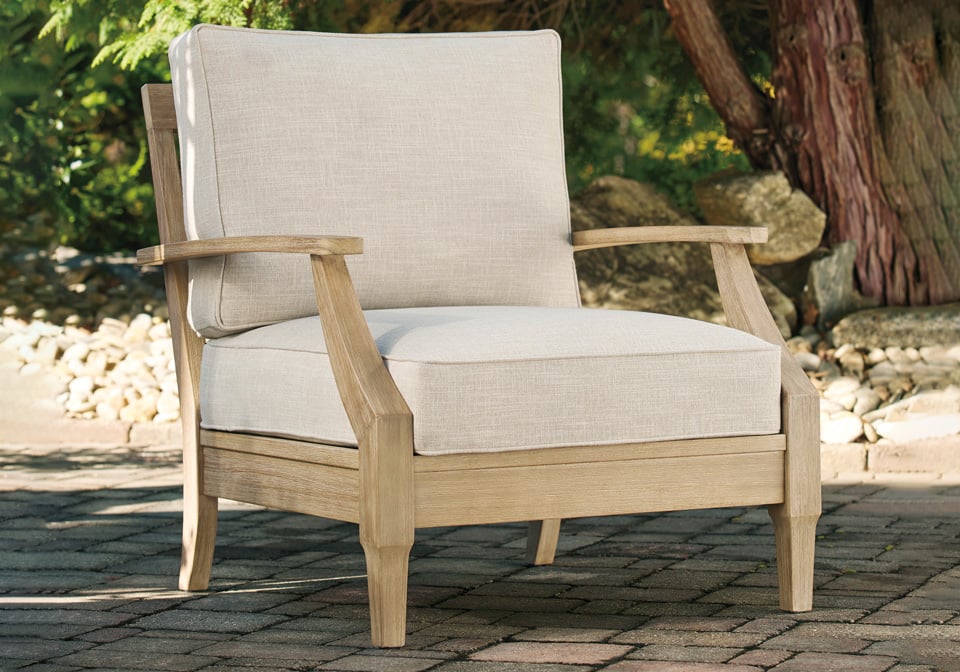 An effortlessly elegant choice in outdoor furniture, this series marries sturdiness and style in such a delightful way. For that much more weather protection, the chair’s eucalyptus wood frame with tapered touches and slat styling is treated to a 5-step finishing process. Sumptuously soft yet remarkably durable, the included cushions are wrapped in a high-performing, low-maintenance Nuvella® fabric you’re sure to love.