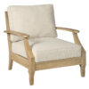 Collection features durable eucalyptus wood with an antiqued teak color paint finish. The finish is done in 5 steps: stain, sealer, glaze and 2 top-coats of paint. All with high performance Nuvella fabric.