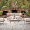 On-trend style, made for outdoor living. This outdoor table and chair set impresses with its contemporary vibe and durable construction. Detailed rope designs on sturdy aluminum frames make a chic impression. And with UV-resistant performance fabric, the cushions stay vibrant as they weather the elements.