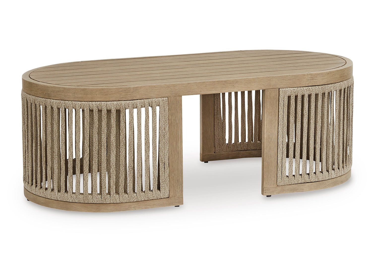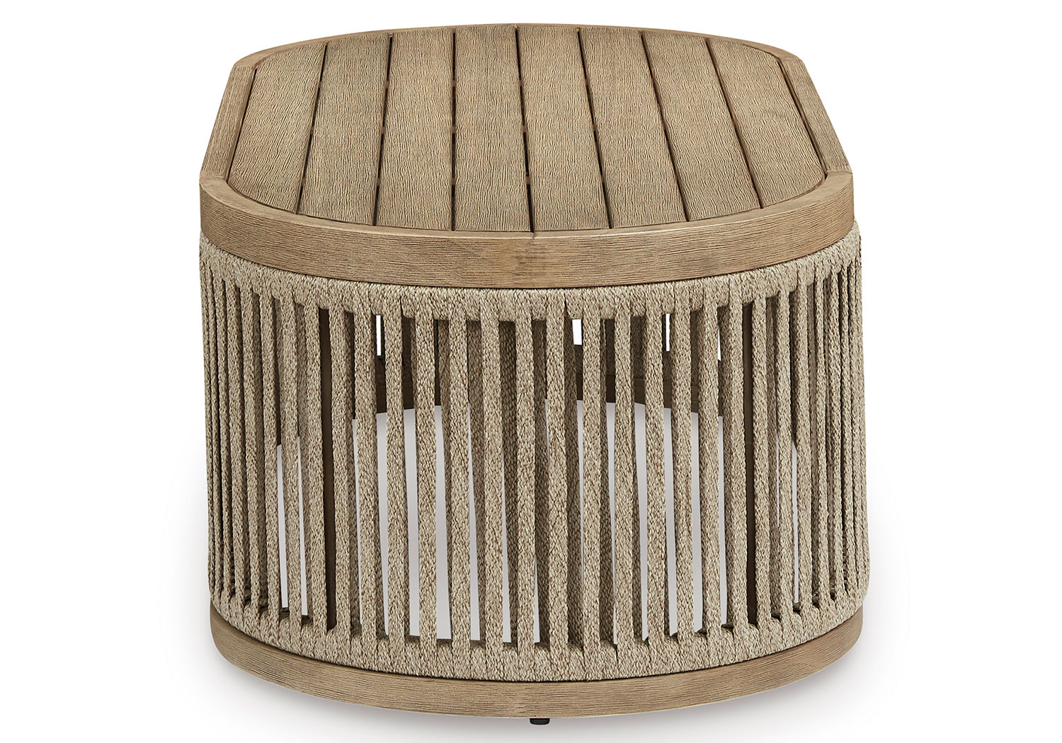 Round out your outdoor living space with the naturally beautiful look of wood. This coffee table will serve up seasons of relaxation on your back deck or sitting pretty by the pool. A gently curved open-weave design, crafted from eucalyptus wood and polyester rope, is the perfect merger of high fashion and lasting durability. It’s just the spot for sips and snacks.