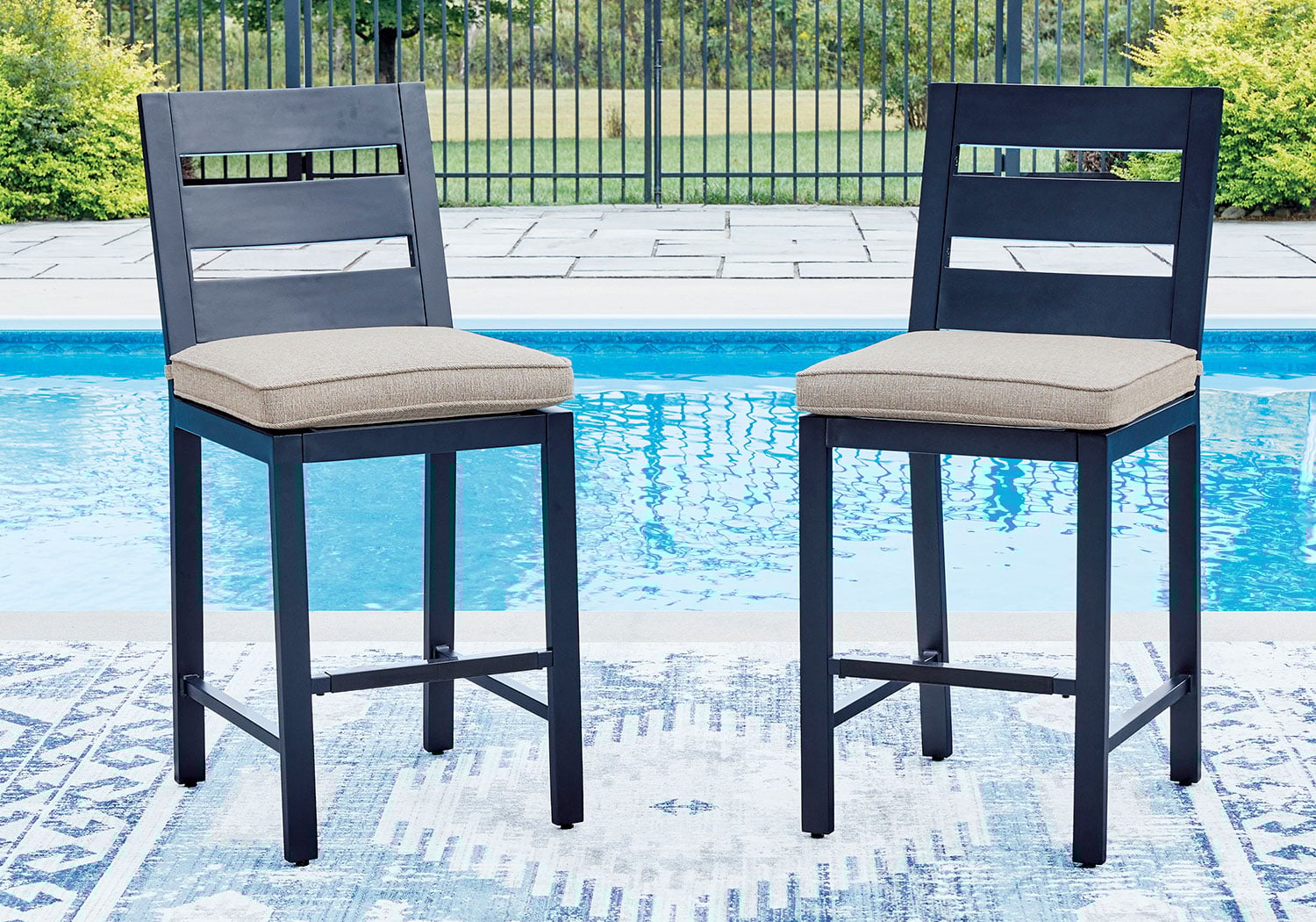 Easy-breezy beauty, made to withstand the elements. This outdoor counter height bar stool, in a soothing shade of blue, makes a serene statement on your deck or patio. A cushioned seat keeps you comfy as you lounge. Crafted with durable materials for added longevity, it’s a smartly stylish addition to your outdoor oasis.
