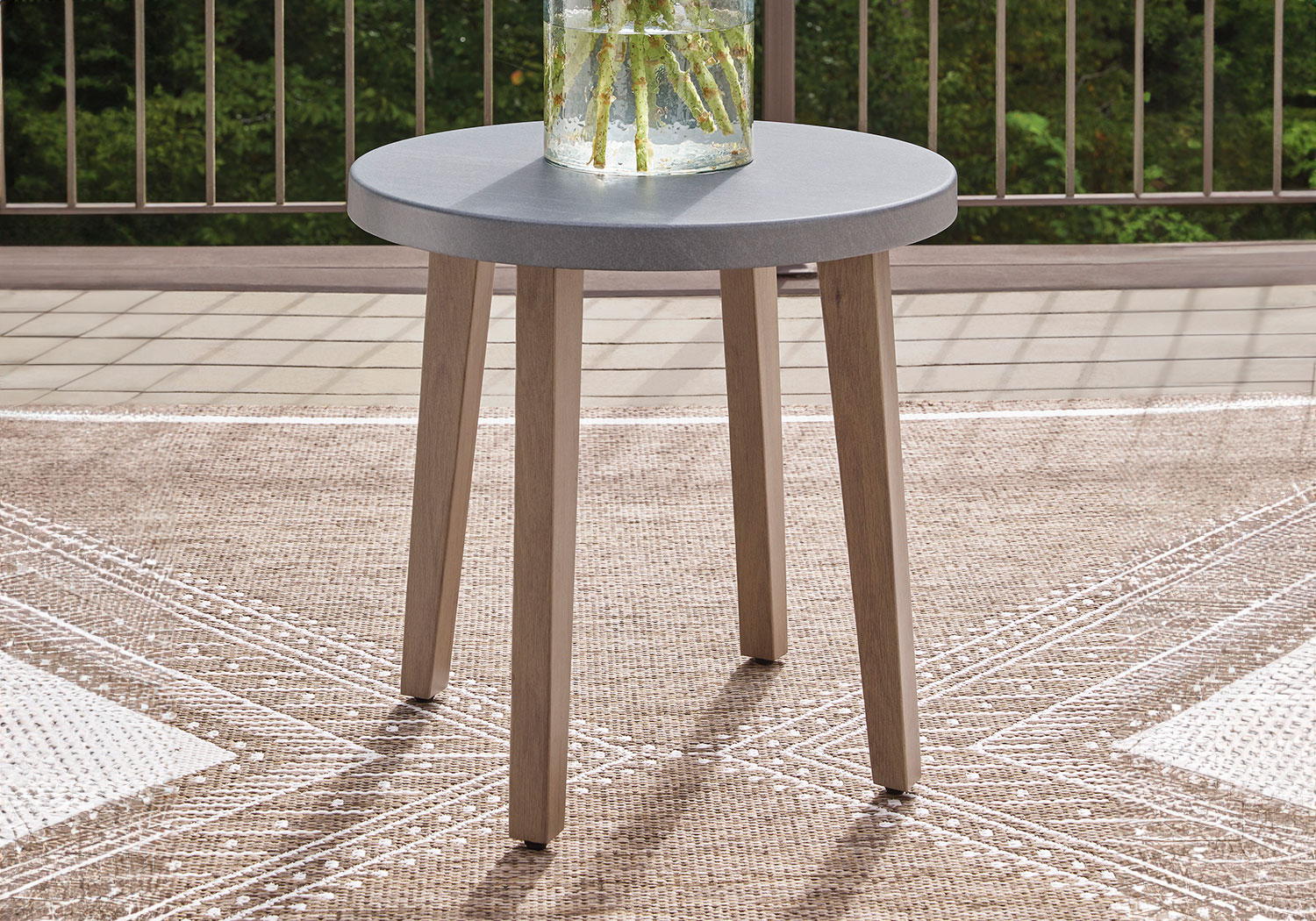 High style, meet sleek durability. This outdoor end table combines a contemporary silhouette with must-have longevity, so you can bring your eye for design alfresco. It impresses with the refined appeal of wood-look aluminum and a stone-look top, expertly completing your outdoor seating area.