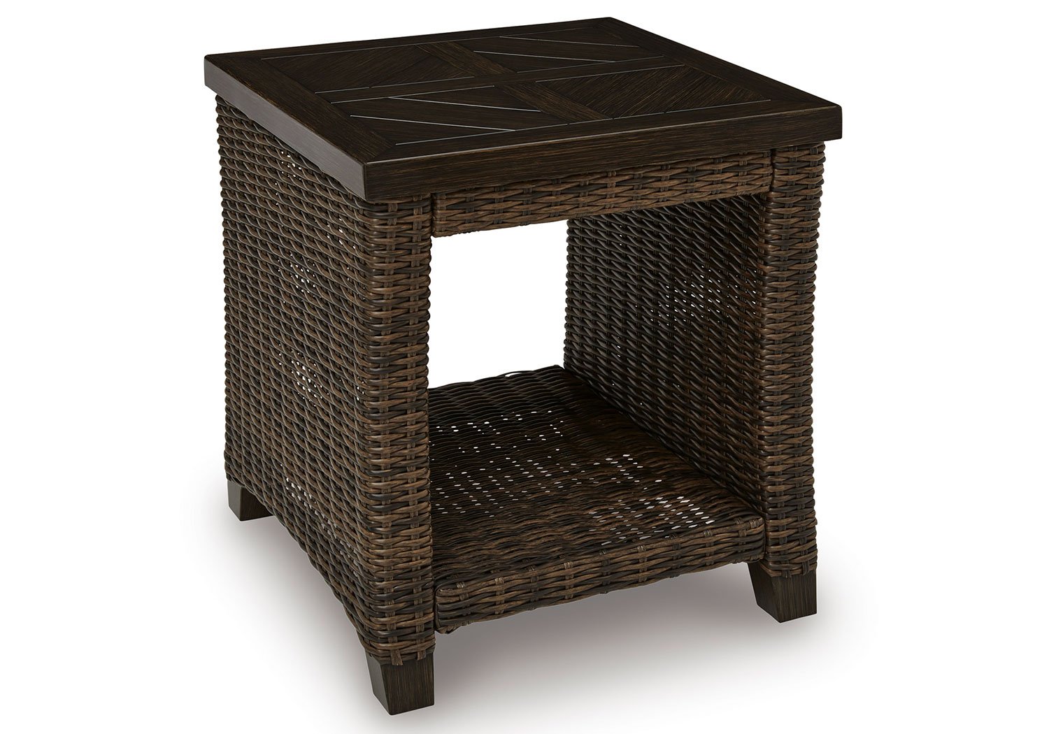 Looking for that special spot to relax and entertain on your deck or patio? Then you’ll love this outdoor end table. With beautifully textured resin wicker over a sturdy aluminum frame, it brings so much style and warmth to your outdoor space. And the hand-brushed, wood-look finish means you can spend less time worrying and more time chilling. What a smart and stylish way to create a beautiful, lasting space for everyone to enjoy.