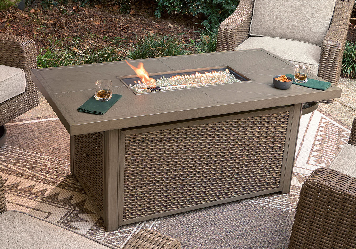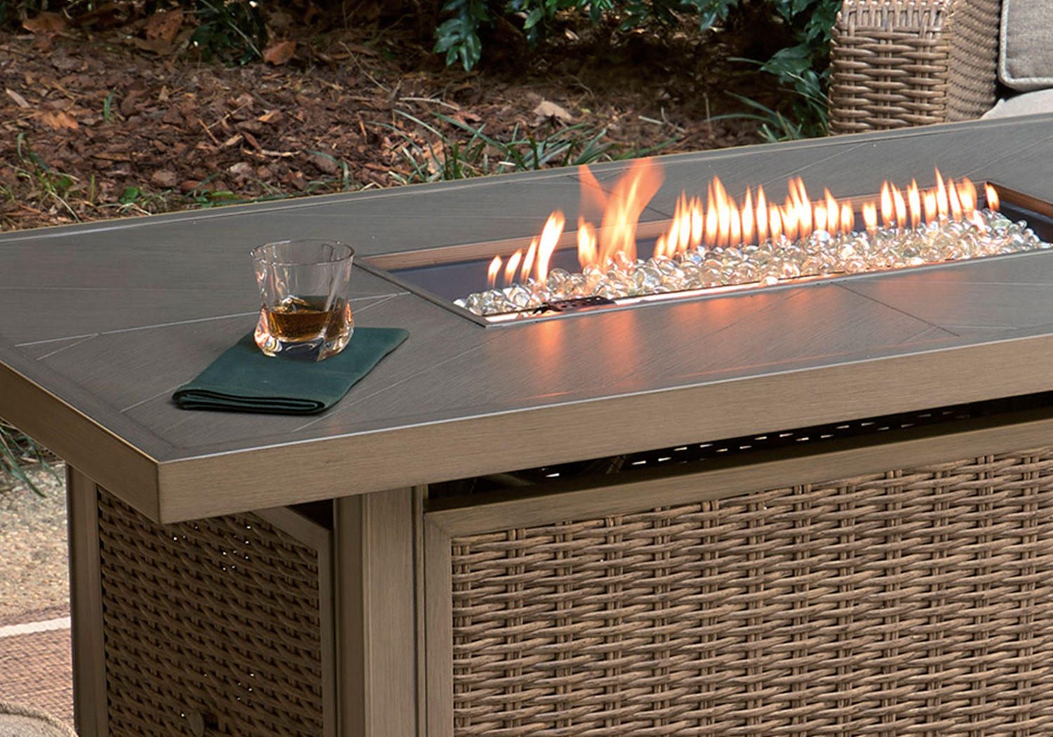 Who says the great outdoors isn’t made for luxury living? This outdoor fire pit table offers all of the high-end design and durability you could ask for, and then some. Its all-weather, rust-resistant aluminum frame provides the easy-breezy wicker look you love without the high maintenance. And with a stainless steel burner, this fire pit table turns your backyard into a hotspot for entertaining.