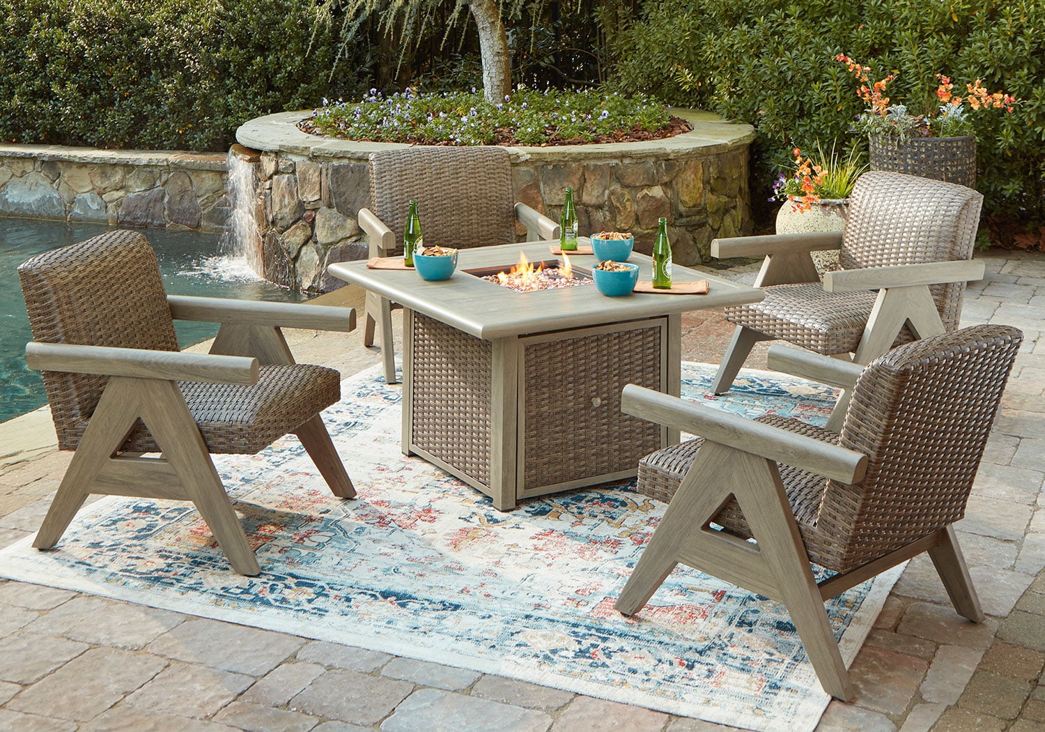 Cliff Trails Beige Outdoor 5pc. Fire Pit Set