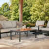Elevate your outdoor living with this stylish four piece patio set featuring a loveseat two armchairs and a sleek table combining comfort durability and modern design perfect for relaxing entertaining and enjoying sunny days in any outdoor space beautifully designed