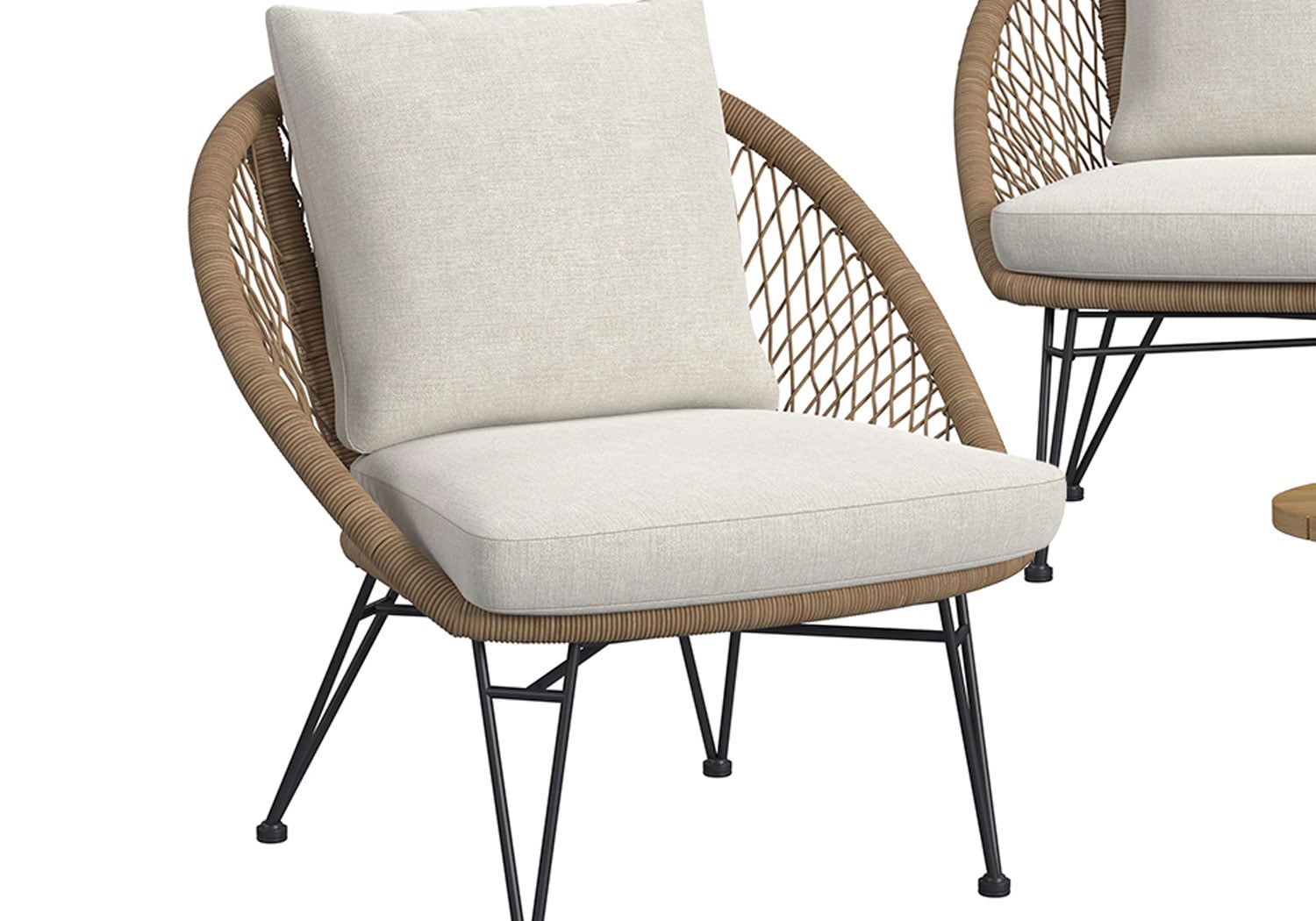Weather resistant cushions sturdy metal frame breathable woven design lightweight construction easy assembly compact table removable covers fade resistant fabric ergonomic seating durable finish versatile style ideal for patios balconies gardens and outdoor lounging comfort spaces