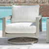 Indulge in luxe outside living without sacrificing longevity. This outdoor loveseat combines on-trend texture with a sleek aluminum frame. Lounge poolside or on the porch—the comfy cushions are a chic spot for you and a partner to soak up the sun. And with cleanable, UV-resistant Nuvella® fabric in a showstopping corded look, style and durability go hand in hand.