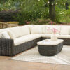 Add luxury, comfort and durability to alfresco fun. This outdoor sectional captures the textural beauty of wicker while withstanding the elements, from rain to shine. With a UV-resistant design, the wonderfully low-maintenance Nuvella+™ fabric maintains its good looks over time. Deep, roomy seating completes the piece, offering ample space to sprawl out.