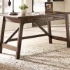 Leaning toward a casually cool look with a touch of rustic industrial flair? This home office desk with canted legs takes a fresh stance on style. Two smooth-gliding drawers with dovetail construction reflect high quality that never goes out of fashion. Saw marks infuse a touch of rich distressing. Antiqued sculptural pulls provide the finishing touch.