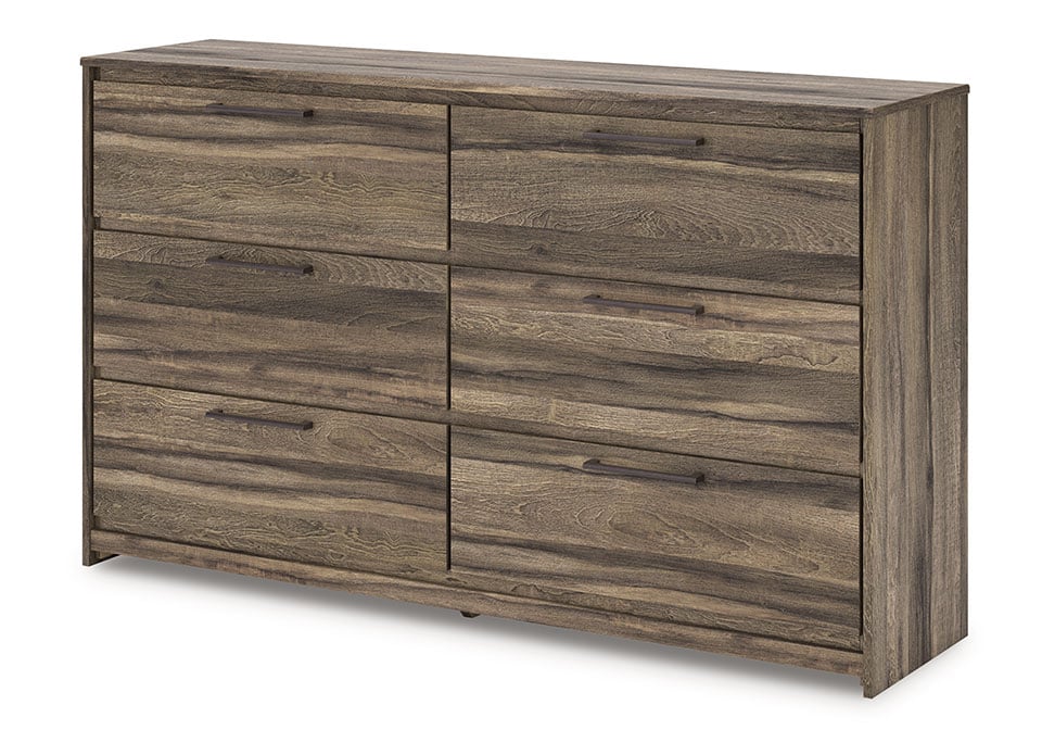 Rest in the casually cool style of this Panel Series. A weathered brown finish over replicated oak grain creates an easygoing vibe, setting the scene in your restful retreat. Clean lines and modern handles provide a fuss-free look.